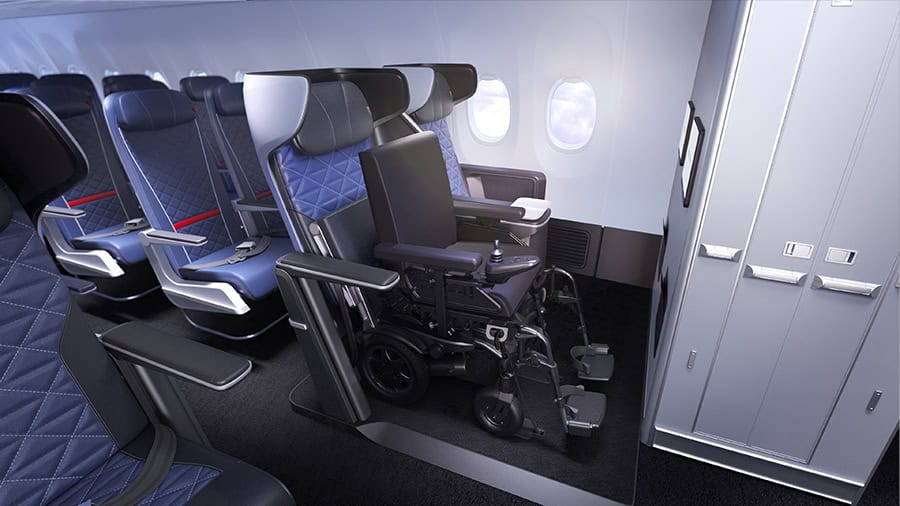 Delta Flight Products has announced accessibility-focused aeroplane products, including two seats that allow users to remain in their own wheelchair for the entire journey