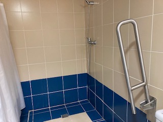 The hotel we stayed at (Hotel Azoris Angra Garden) had an accessible room on each of the 4 floors They let us take pictures of one that was being repainted.